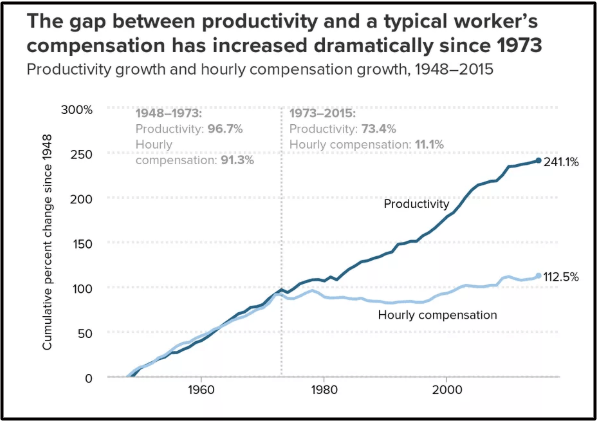 Research into social class today shows some startling inequities. Economic productivity continues to increase while wages have remained stagnant for decades (fig 1.) and more and more wealth is concentrated in fewer hands (fig 2.). This inescapable fact has inspired resistance movements like the Occupy Movement and Fight For Fifteen. After years of organizing, economic inequality has returned to the political debate. This debate on economic inequality and economic justice is Marxโs legacy.
