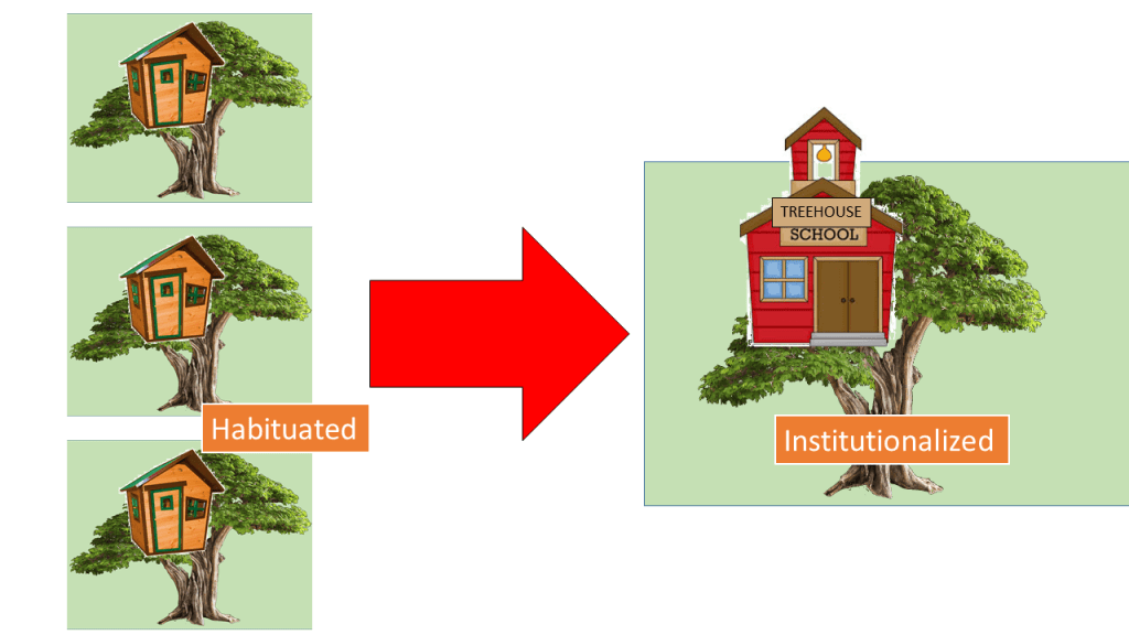 If we didn’t have these prescribed patterns and scripts everyday living would require a lot of energy. Think about walking into a classroom that did not have desks or chairs. You would stress. You would not know what to do. Your default would be to lean against the far wall.