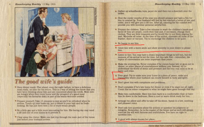 In 1963, Betty Friedan published The Feminine Mystique. This work exploded the myth that the ultimate goal for a woman’s happiness is domestic tranquility. Friedan, through interviews and questionnaires, discovered that, overall, women were largely unhappy with a “problem that has no name.” Women could not identify the source of their unhappiness because they had always been taught that finding a good husband, having children and keeping a house was their natural inclination to happiness. If they were not happy in this, then there was obviously something wrong with them, not with the social arrangement. The Feminine Mystique is largely credited with launching the Second Wave of Feminism in which activists pursued equality at all levels of culture.