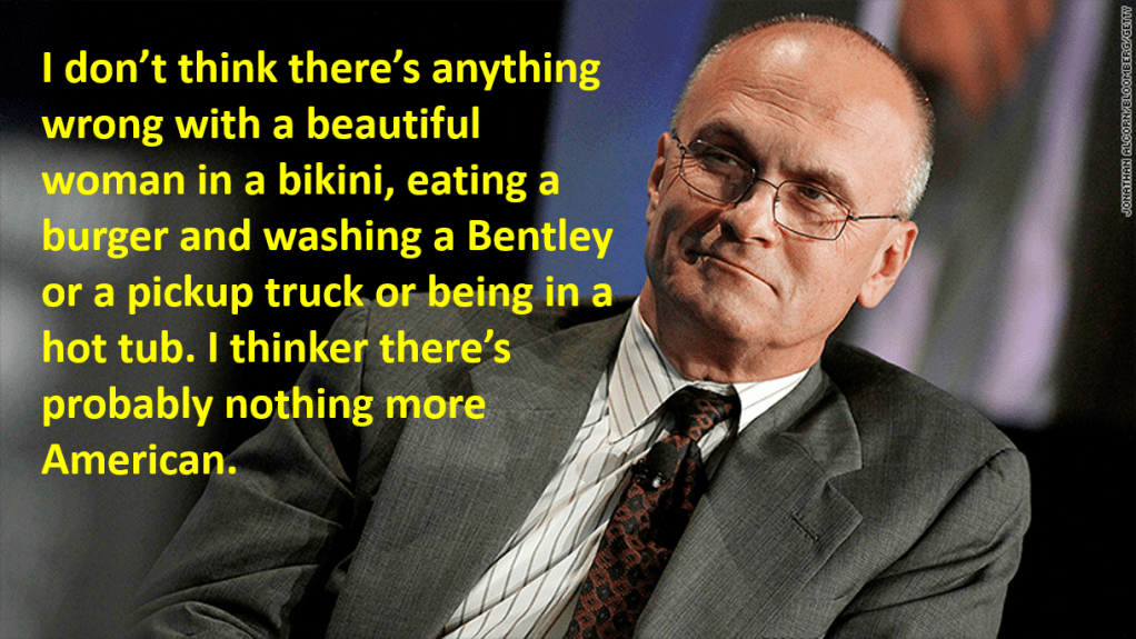 This was Andrew Puzder, for CEO of CKE Restaurants, the parent company for Hardies and Carl Jr’s. He was nominated by President Trump to be Secretary of Labor, but had to withdraw his nomination for lack of support. Shocker!