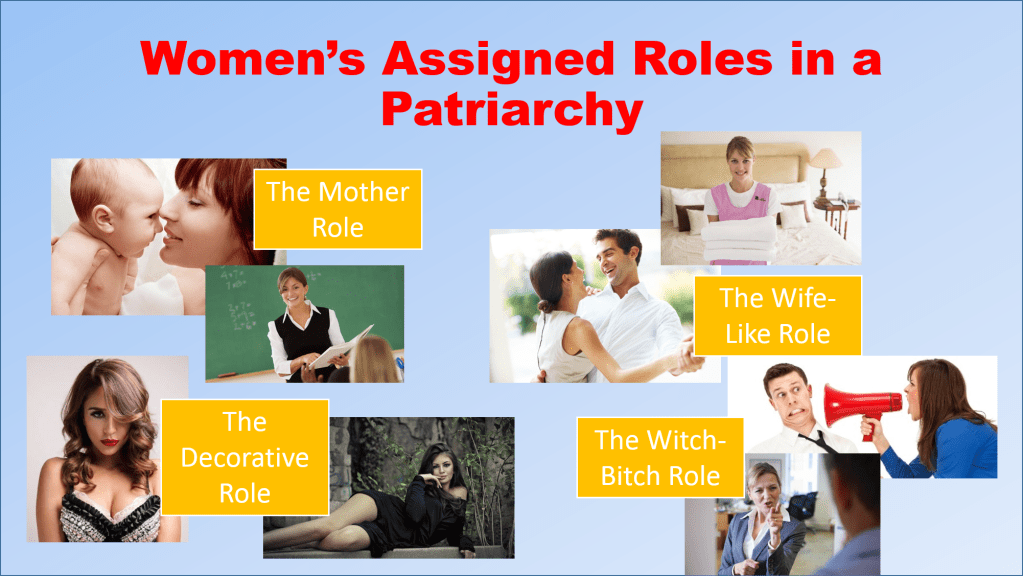 Millett flips this model. According to Millett, men have historically used their dominant status to assign relatively narrow, powerless and isolated roles to women. Namely, women are consigned to three appropriate roles: The Mother Role, The Wife Like Role and the Decorative Role (which she can only satisfy in youth). Any inability or unwillingness to satisfy these role expectations results in a fourth possible label: The Witch-Bitch Role.
