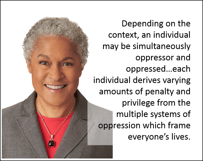 Furthermore, Collins elaborates a matrix of domination in which “depending on the context, an individual may be simultaneously oppressor and oppressed…each individual derives varying amounts of penalty and privilege form the multiple systems of oppression which frame everyone’s lives.” So a black woman may be subject to dominance by white or black men, but she can also be an agent of dominance over children or people in a lower class status, perhaps employees.