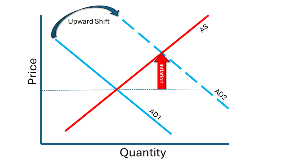 Here is an example of Inflation resulting from an increase, or rightward shift in Demand.