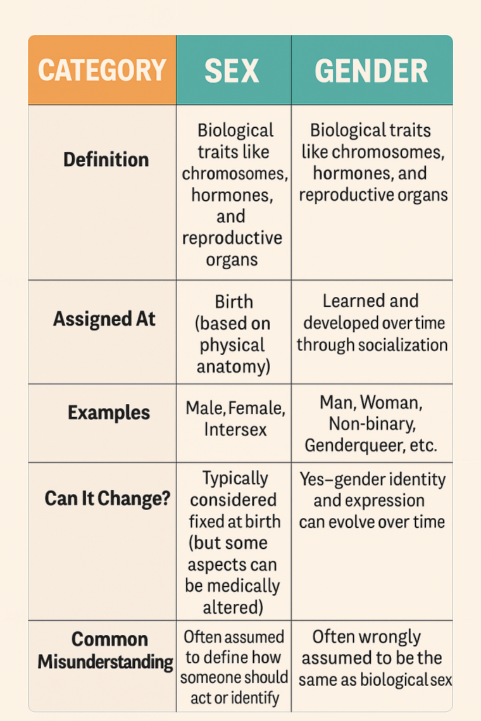 First, you may have noticed how I used the terms “Sex” and “Gender” above. I was intentional with how I used these terms. Contrary to what you may have heard from others or seen on social media, these terms are not synonymous.